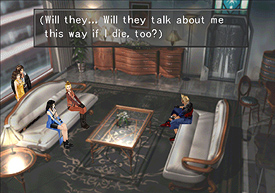 I didn’t cap it, but right after this, Squall has the strongest emotional reaction we’ve seen from him in the entire game. He completely rejects this idea, that he can just die and that’ll be that, people will talk about him and decide what kind of person he was.