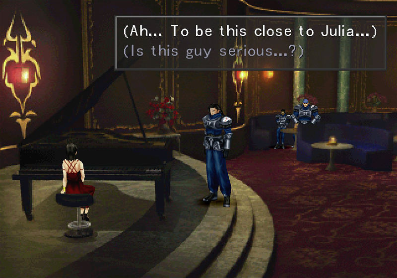 Squall doesn't dwell on the dream, mostly because how the hell do you make sense of something like that, but soon afterwards he can have a conversation with an NPC that I find illuminating.