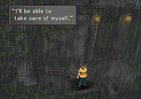 This is hard for him, more than he really knows how to to express. Squall's monologues are always a little stream-of-consciousness, but in this one, he really seems lost. Even when he tries to reassure himself, he can't quite do it.